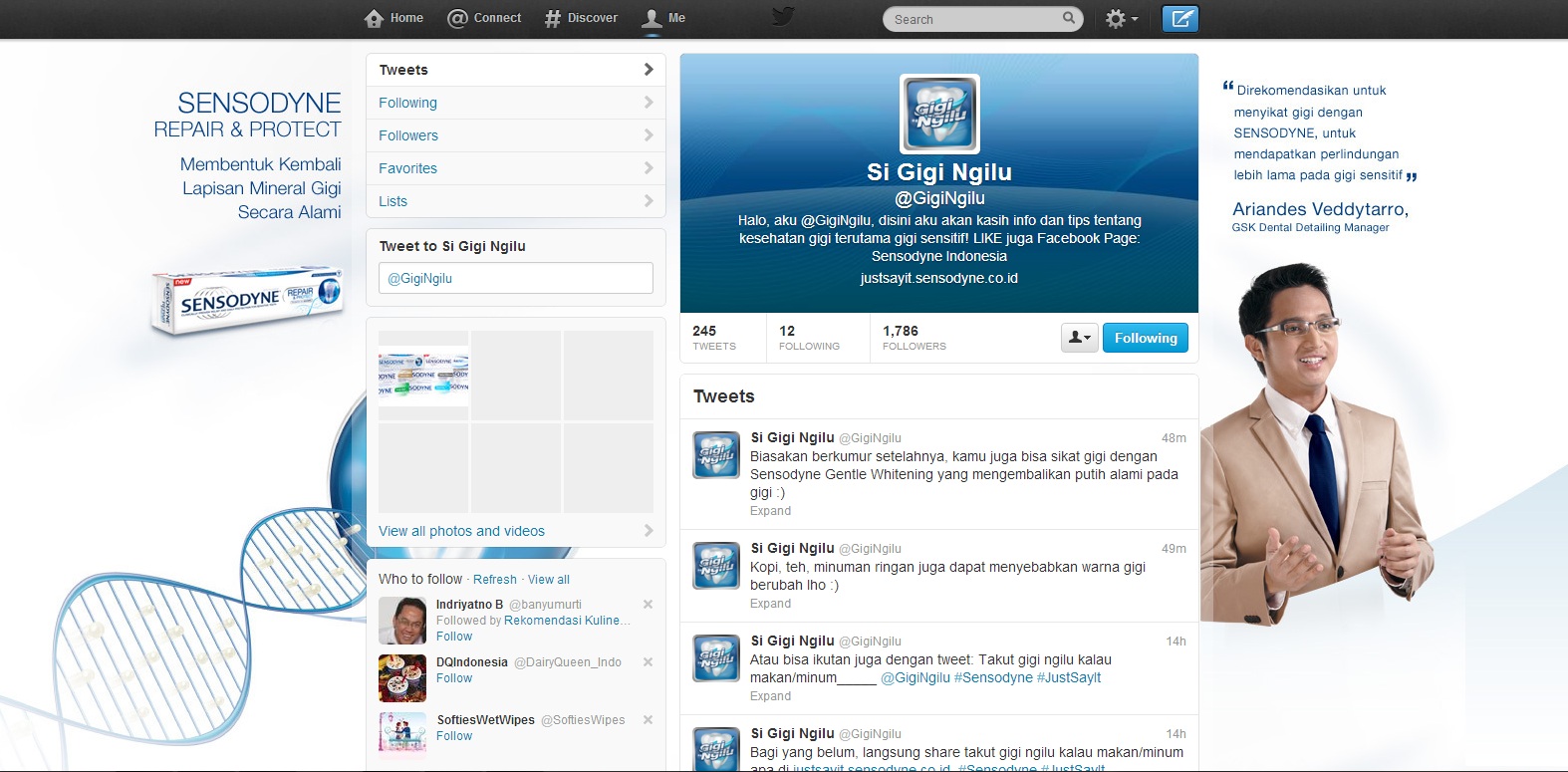 anti gigi ngilu di berbagai media mulai dari microsite Sensodyne, twitter,